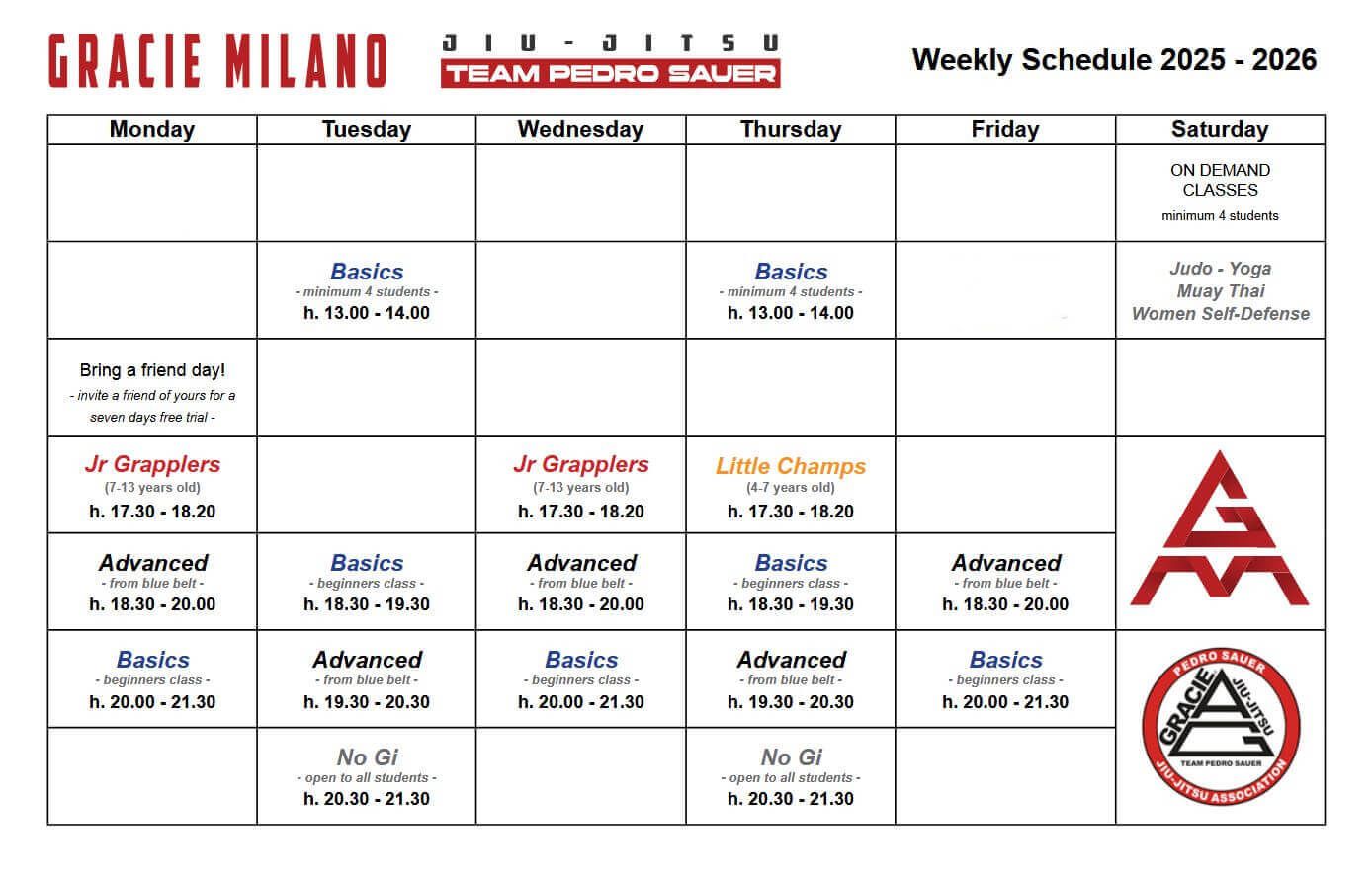 Francesco continued to teach according to Gracie University’s principles until January 2024. He then joined the Pedro Sauer Brazilian Jiu-Jitsu Association alongside Professor Thiago Bertoni. His friendship and daily training with Professor Bertoni, in the last three years, have allowed Francesco to deepen, refine, and improve his Jiu-Jitsu, expanding his technical and strategic knowledge of this remarkable art.